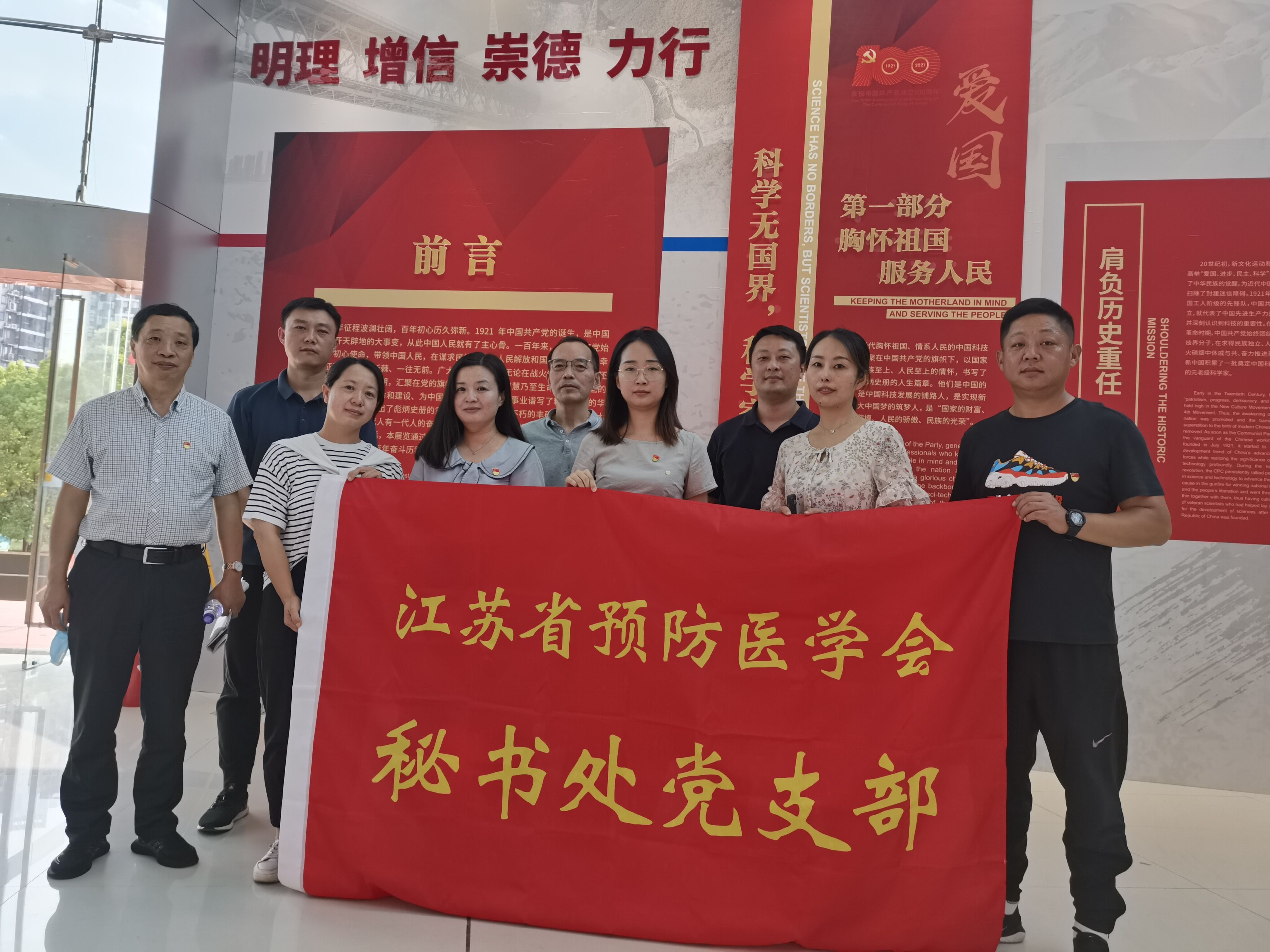 9月16日下午,江苏省预防医学会秘书处党支部组织党员群众参观省科协“众心向党 自立自强——党领导下的科学家”主题展。学会会长、党建工作领导小组组长汪华参加活动。