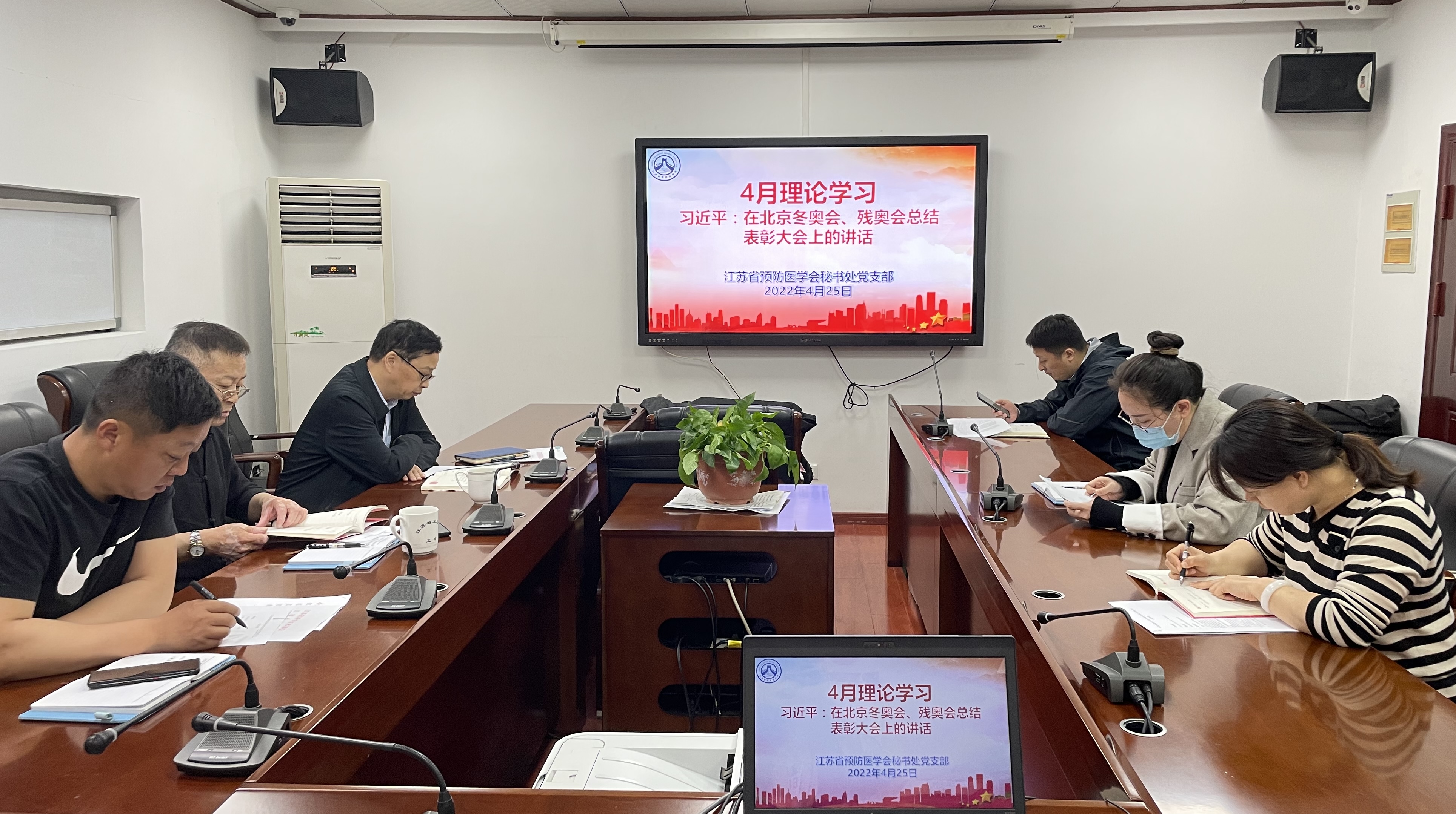 4月25日,江苏省预防医学会秘书处党支部组织召开4月份理论学习会议,深入学习习近平总书记在北京冬奥会、冬残奥会总结表彰大会上的讲话。会议由学会秘书处党支部书记蒋辽远秘书长主持。