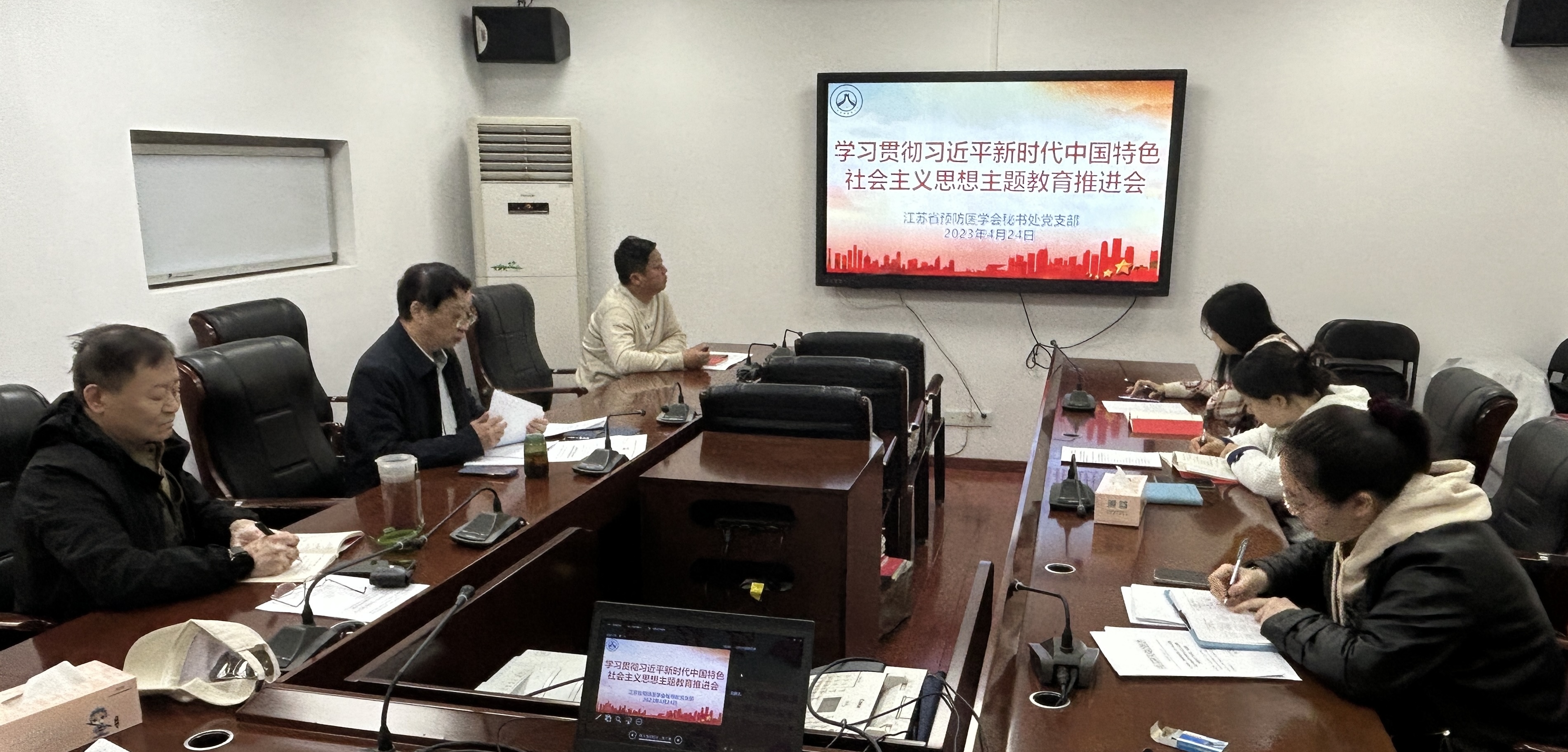 4月24日,江苏省预防医学会秘书处党支部召开学习贯彻习近平新时代中国特色社会主义思想主题教育推进会。会议深入学习贯彻习近平总书记在主题教育工作会议上的重要讲话精神,贯彻落实省科协党组部署要求,对学会秘书处党支部开展主题教育进行动员部署推进。会议由中共江苏省科技社团委员会委员、学会党建工作领导小组成员、省预防医学会秘书处党支部书记蒋辽远主持。