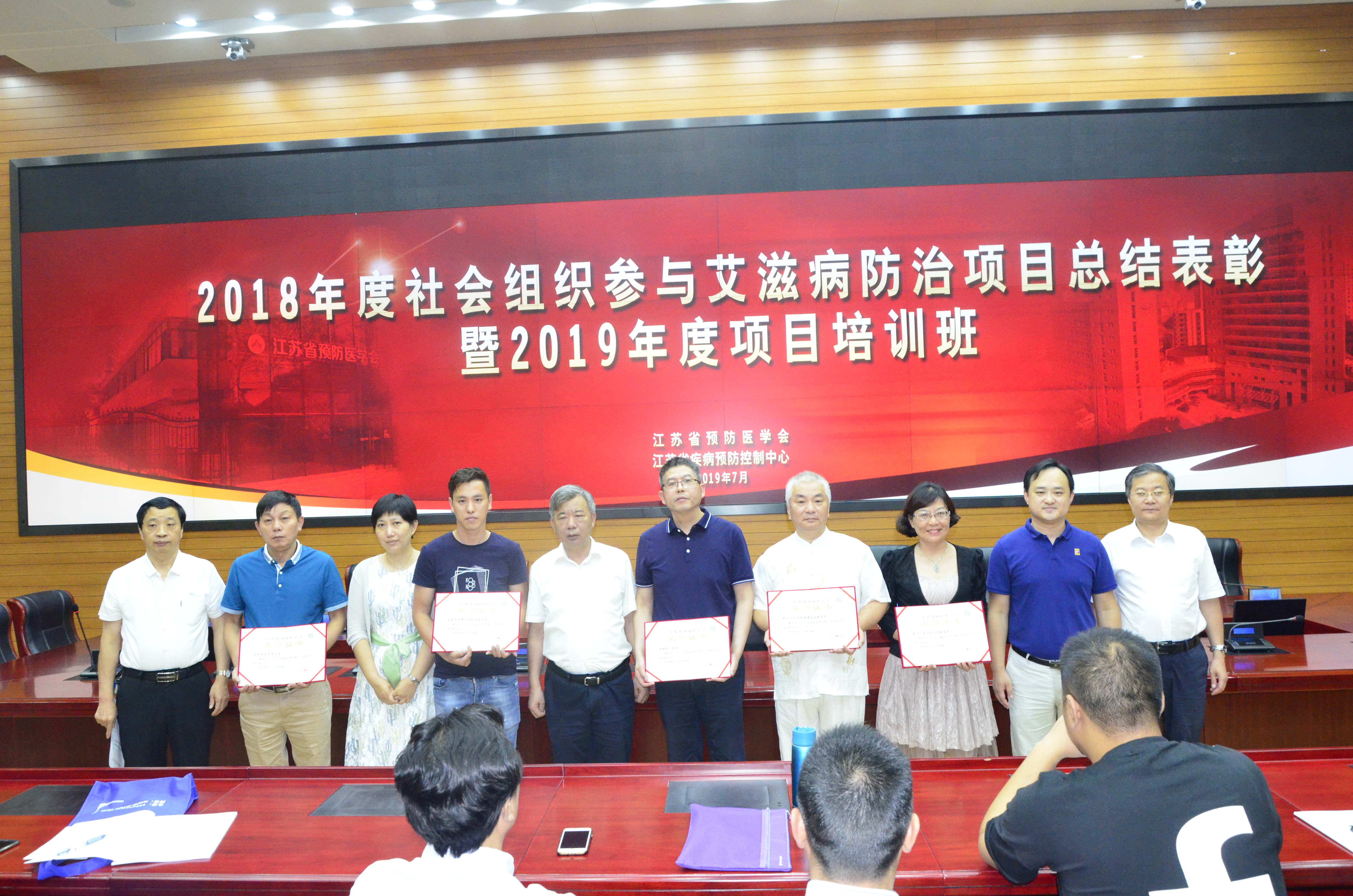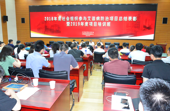 2019年7月13-14日, 江苏省社会组织参与艾滋病防治项目总结表彰暨管理培训班在江苏省疾病预防控制中心召开。获得2019年社会组织参与艾滋病防治基金项目和省级艾滋病防治项目支持的社会组织共70余名社会组织项目负责人及业务骨干,30余名社会组织培育基地财务人员及业务人员、属地疾病预防控制中心以及设区市疾病预防控制中心项目相关人员参加培训。省卫健委疾控处孙超主任、省疾控中心朱凤才副主任和省预防医学会蒋辽远秘书长出席培训班开幕式,朱凤才副主任作动员讲话,蒋辽远秘书长宣读了南京星友工作组等16个社会组织及培育基地为2018年度最佳单位的表彰决定。省疾控中心性病艾滋病防制所傅更锋所长主持了培训。
